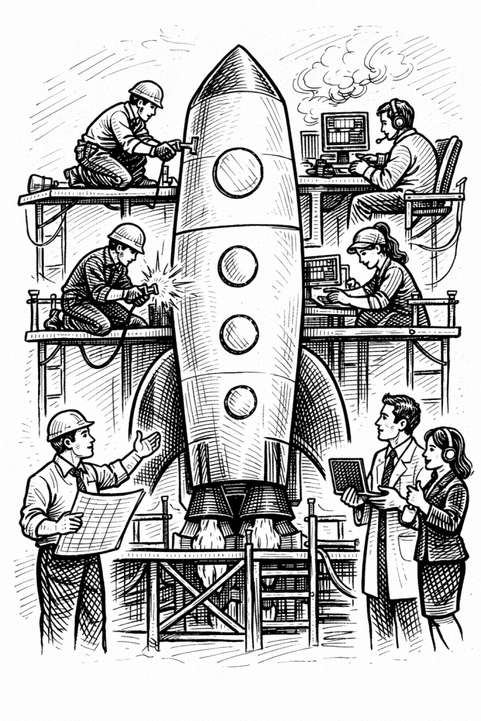Es el típico choque de mundos. Me pasó una vez que tuve que lidiar con un desafío empresarial donde necesitaba “hacer conversar” ingenieros en computación con operadores de un centro de coordinación logística de un sistema de emergencias médicas. Implantar un sistema nuevo de gestión no había sido posible durante dos años. Facilitando la conversación, nos llevó algo menos de nueve meses.